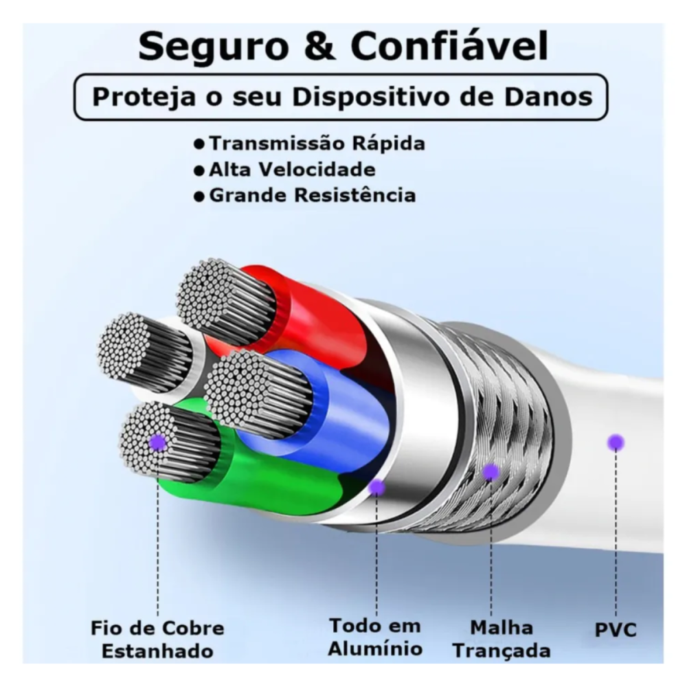 -Tecnologia Anti-Nó: Material externo que facilita o manuseio e evita que o cabo se enrole facilmente.