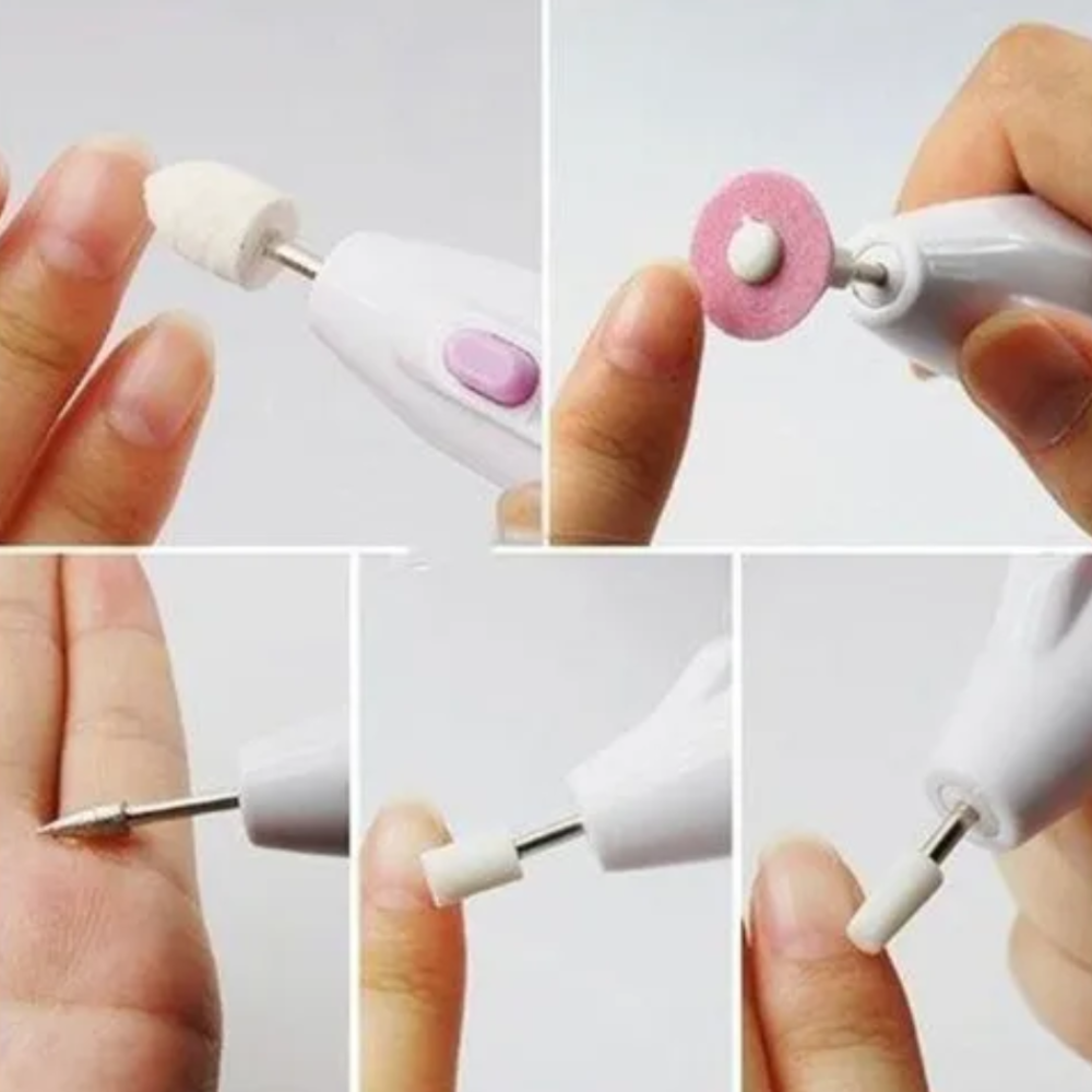Os acessórios removem a pele ressecada e áspera, amenizam calosidades e ainda deixam suas unhas com brilho e sem ondulações. Seu formato semelhante a uma caneta, além de se adaptar perfeitamente a mão, consegue acessar cantos difíceis, proporcionando um acabamento profissional. Composto por 5 acessórios, basta selecionar o acessório adequado e usufruir as funcionalidades