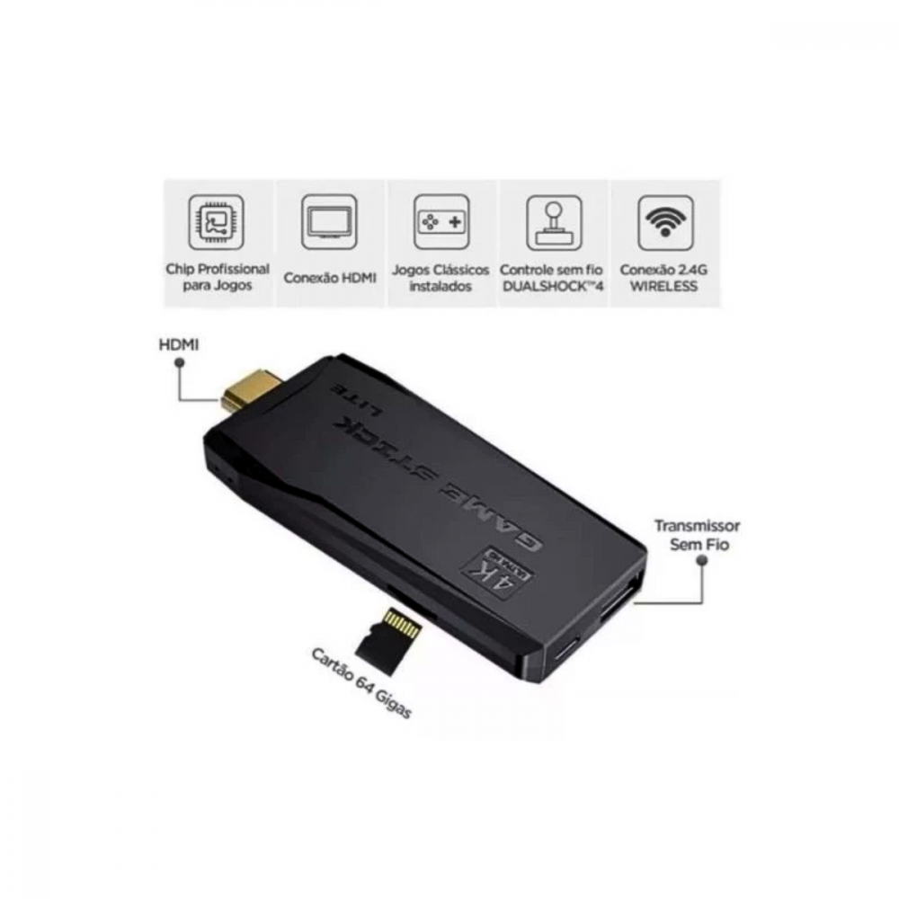 GAME STICK Retrô 2.4G Wireless Mini Game 20.000 Jogos 02 Controles Sem Fio Conexão HDMI