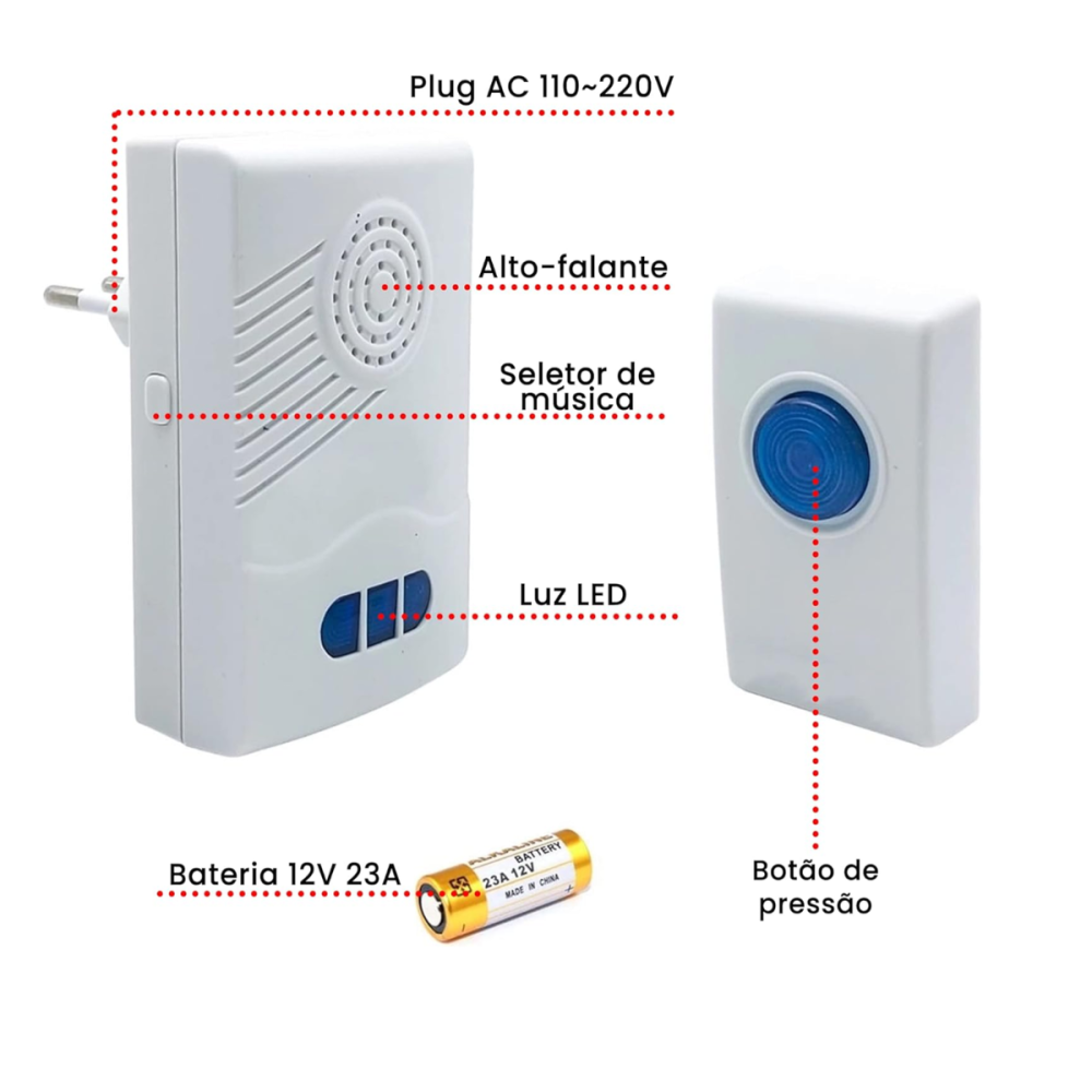 Campainha Sem Fio Com Pilha Alcance 10 Metros Altomex DB-103 / ML-A18