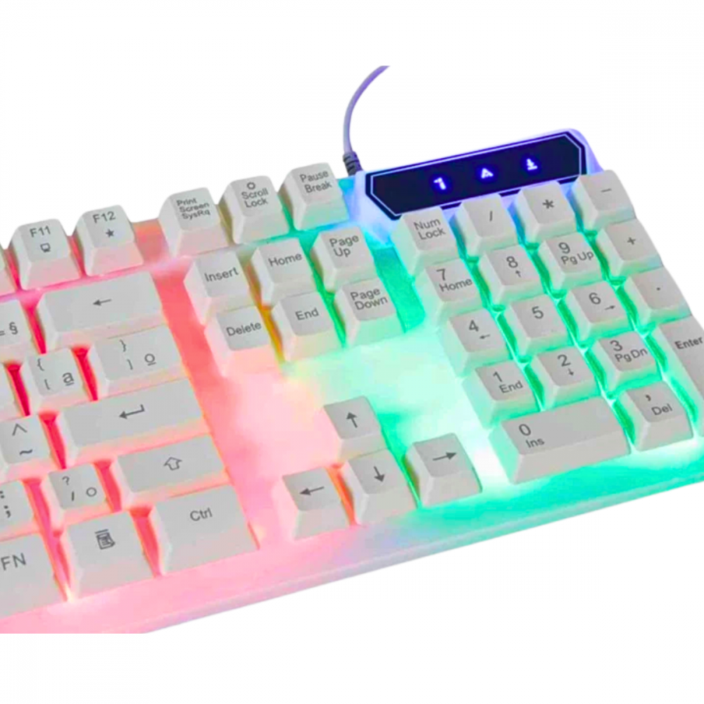 Teclado Gamer Branco Semi Mecânico LED RGB