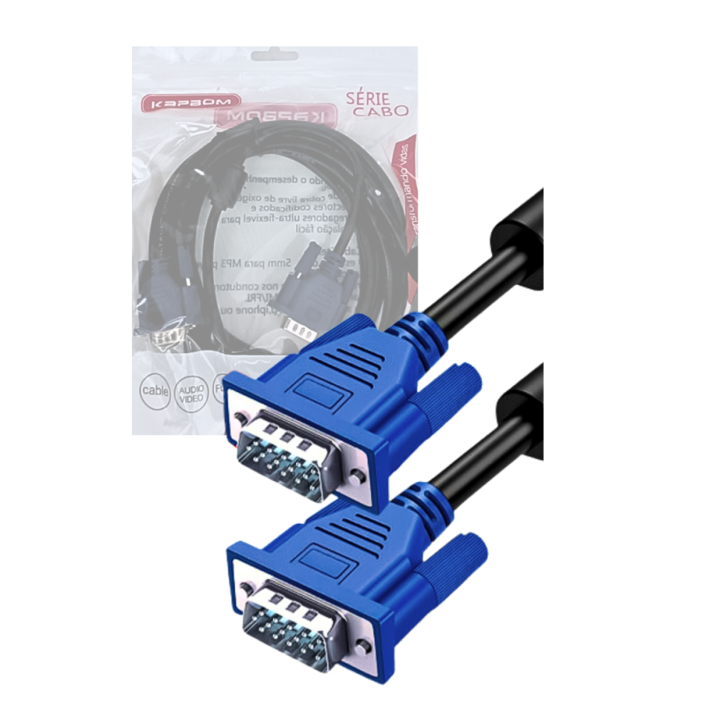 O Cabo VGA/VGA é a solução padrão para estabelecer uma conexão de vídeo analógica estável e de alta qualidade entre seu computador e diversos dispositivos de exibição.
