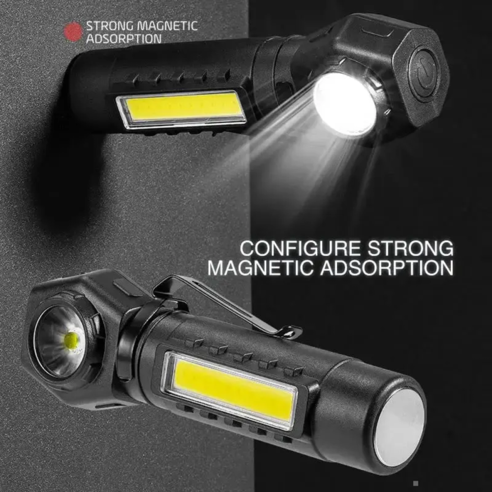 -Sensor de Movimento (ou Sensor de Onda): Muitos modelos com essa configuração 2 em 1 incluem um sensor que permite ligar/desligar a luz (ou alternar modos) com um simples movimento da mão em frente à lanterna, ideal quando as mãos estão sujas ou ocupadas.