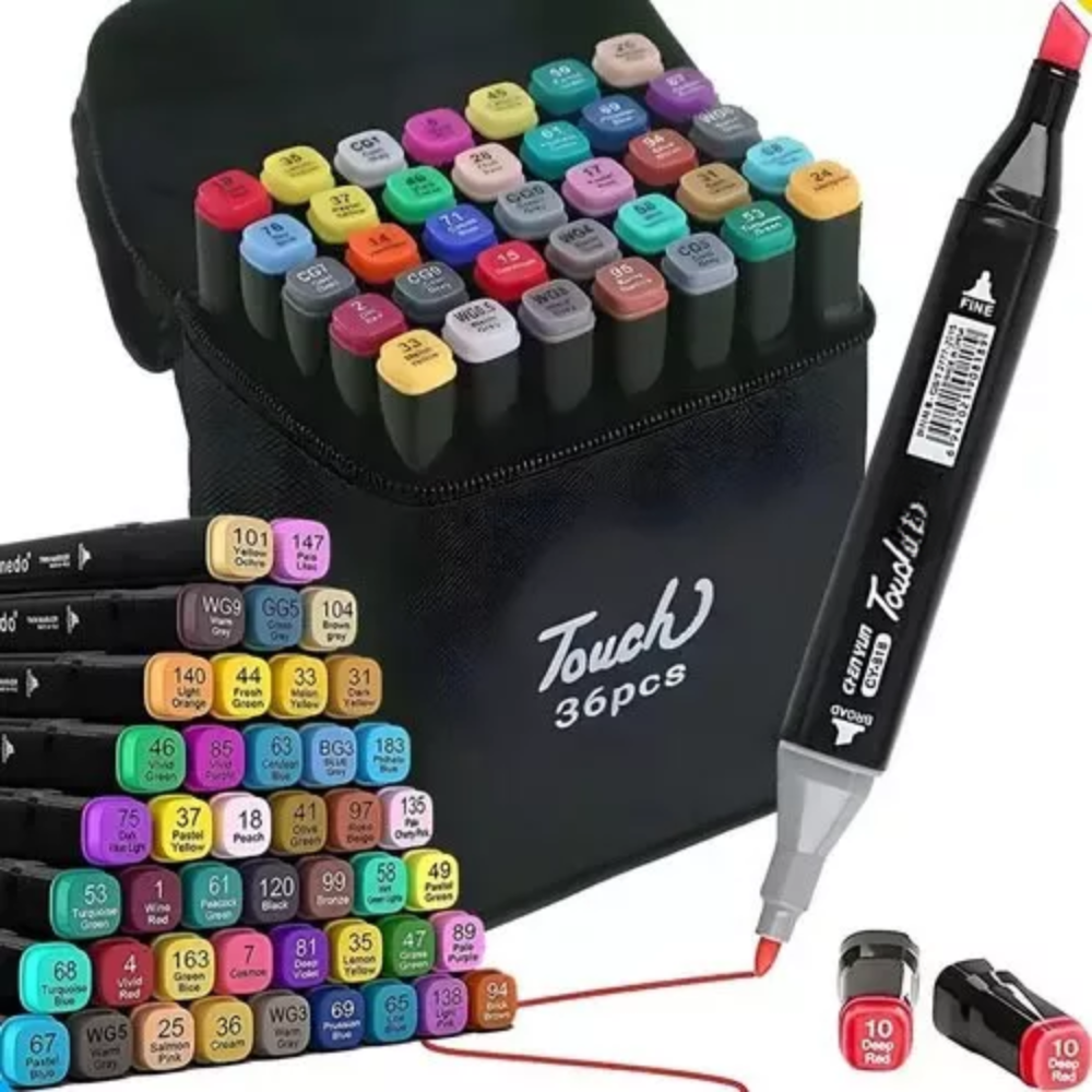 Maleta De Canetinhas Coloridas 36 Cores Para Desenho Marcador Profissional e Escolar Duas Pontas Hidrográfica Touch Sweet 36