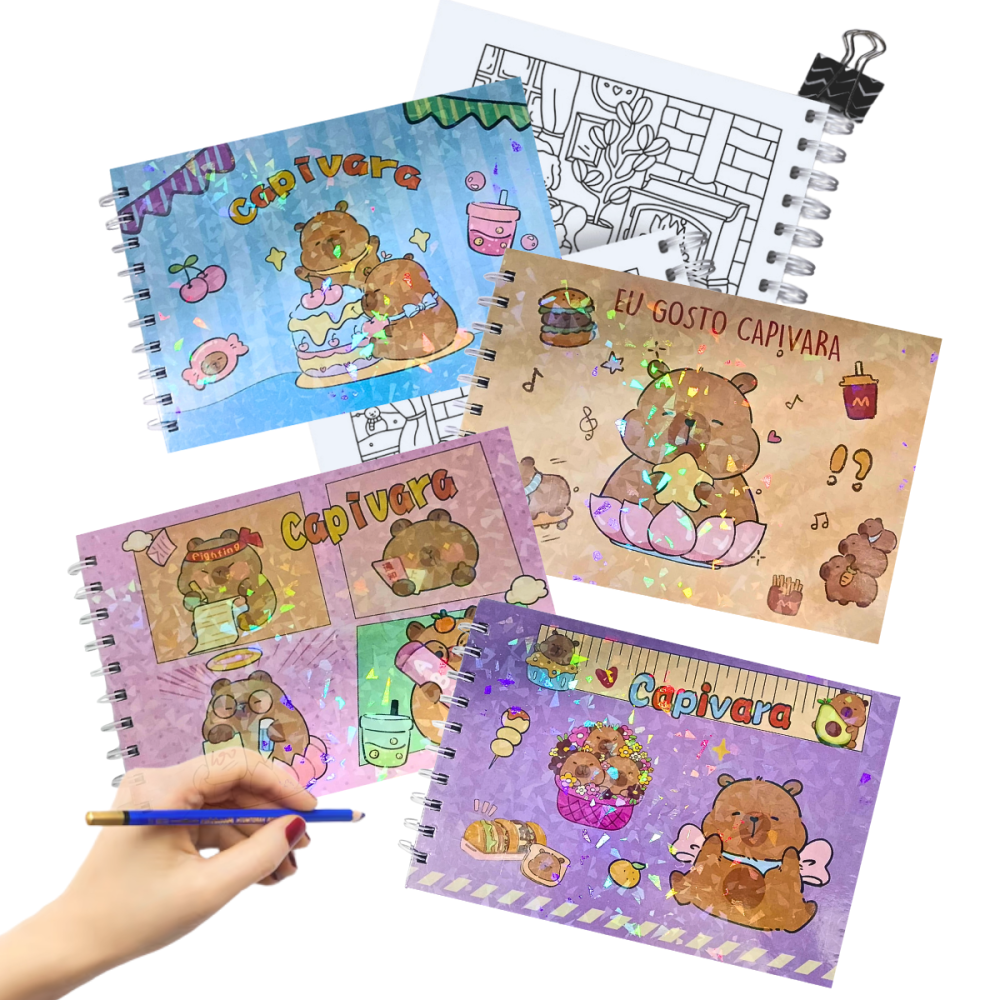 -Design Exclusivo de Capivara: A capa dura é ilustrada com a charmosa Capivara da Bobbie Goods, adicionando um toque de fofura e originalidade à sua rotina criativa. É um item que vai inspirar você a cada vez que o abrir!