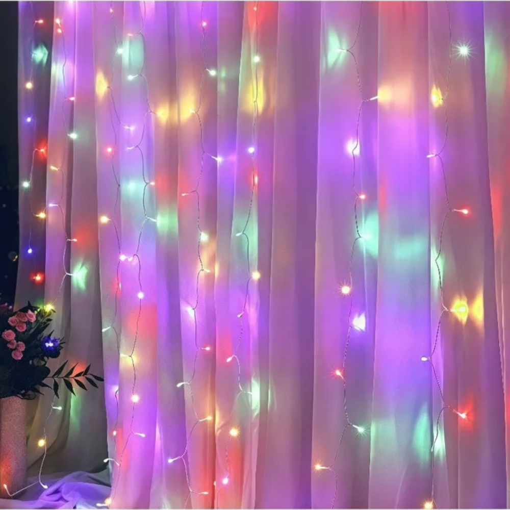 Com 3 metros de largura e 2 metros de queda, ela é ideal para decorar grandes janelas, paredes, fachadas e jardins, transformando qualquer ambiente com um brilho intenso e festivo.