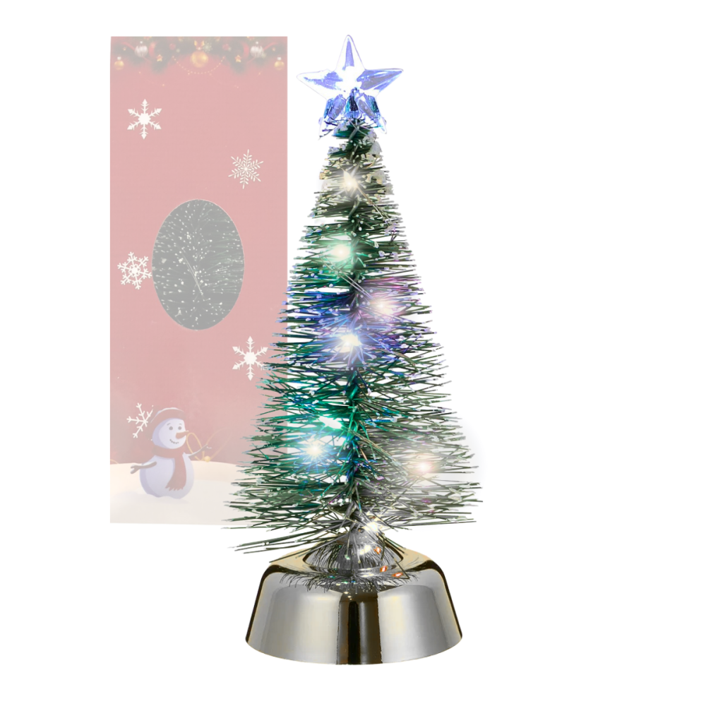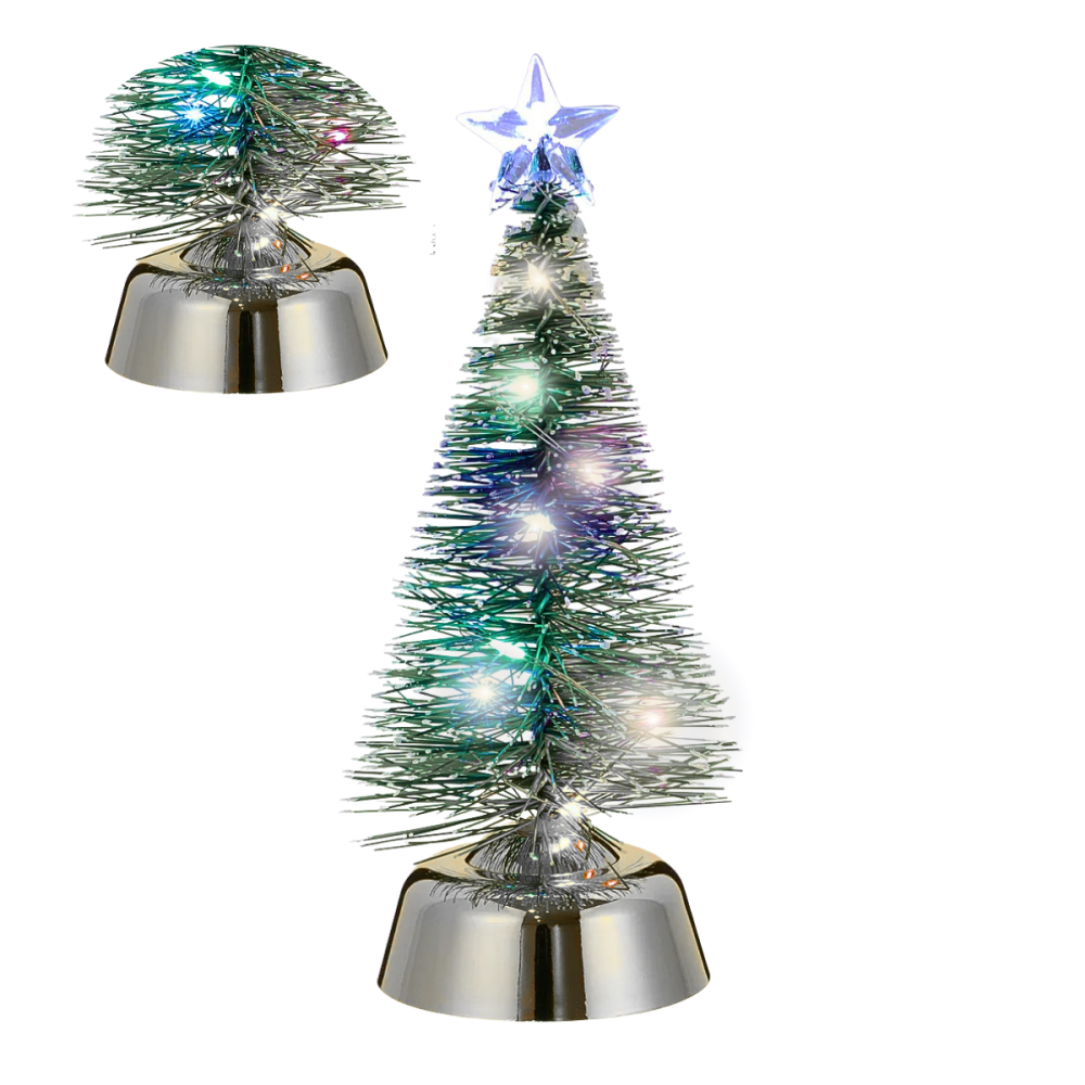 Mini Árvore de Natal Cedro Brilhante LED Branco Base Cromada a Bateria Altomex ZSS-039