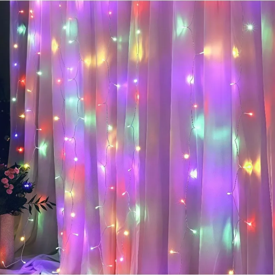 Cortina Natalina de Luz LED Colorido 3 Metros Conector USB