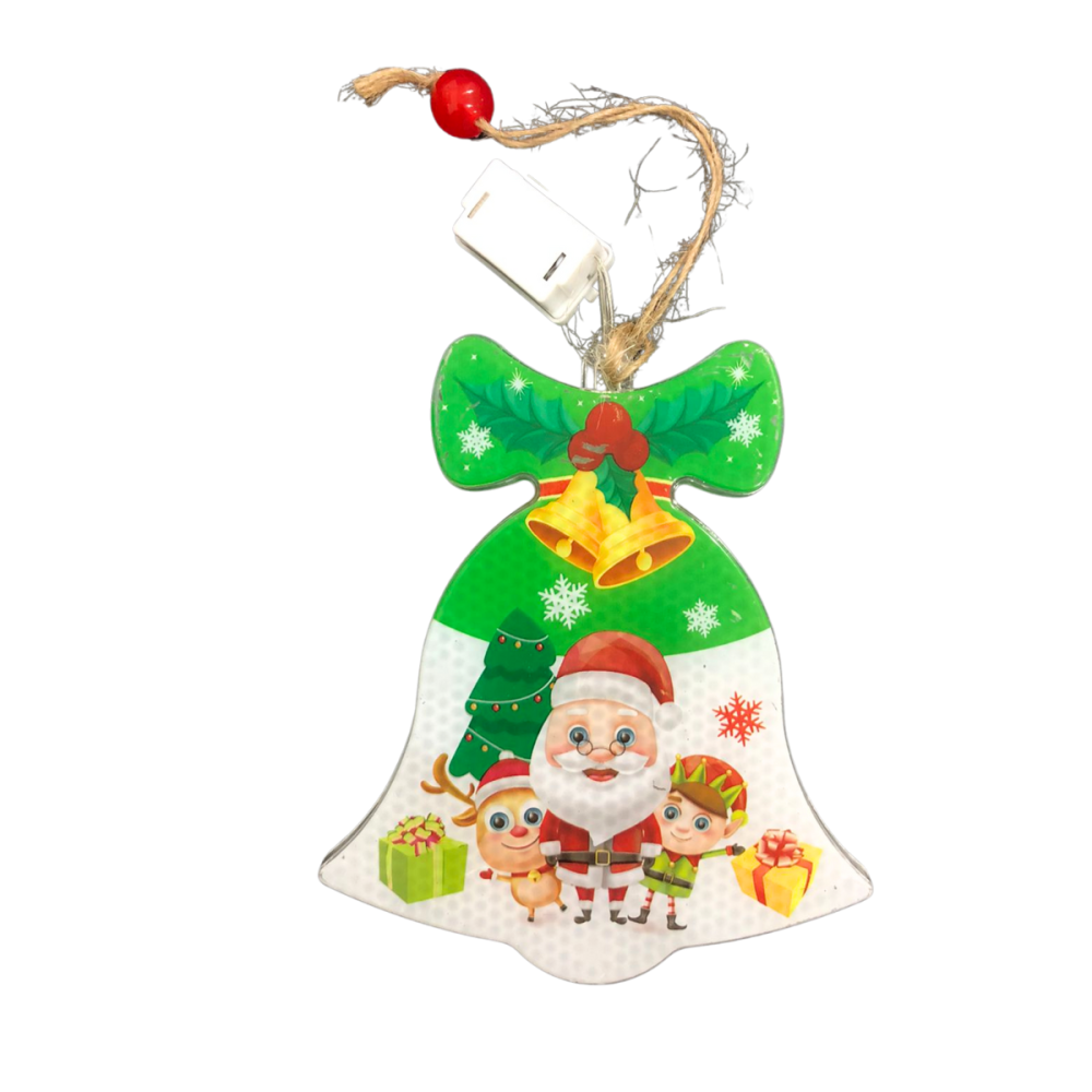 -Formatos Temáticos: O item é composto por 01 pingente decorativo em formatos variados, sendo os mais comuns o Sino de Papai Noel e a Rena de Natal. Esses formatos são o ponto focal da iluminação.