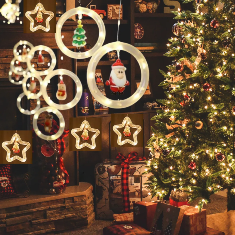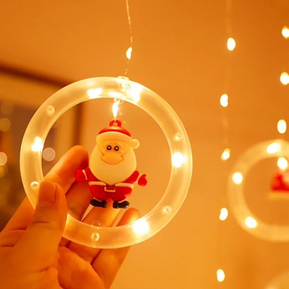 O modelo AL-4870 é um conjunto de luzes decorativas LED indicado para uso em decorações natalinas e ambientes festivos. O produto é confeccionado em estilo cortina, com fios transparentes e iluminação multicolorida. Possui miniaturas temáticas de Papai Noel, árvore de Natal e boneco de neve, que complementam a decoração com detalhes visuais característicos da época.