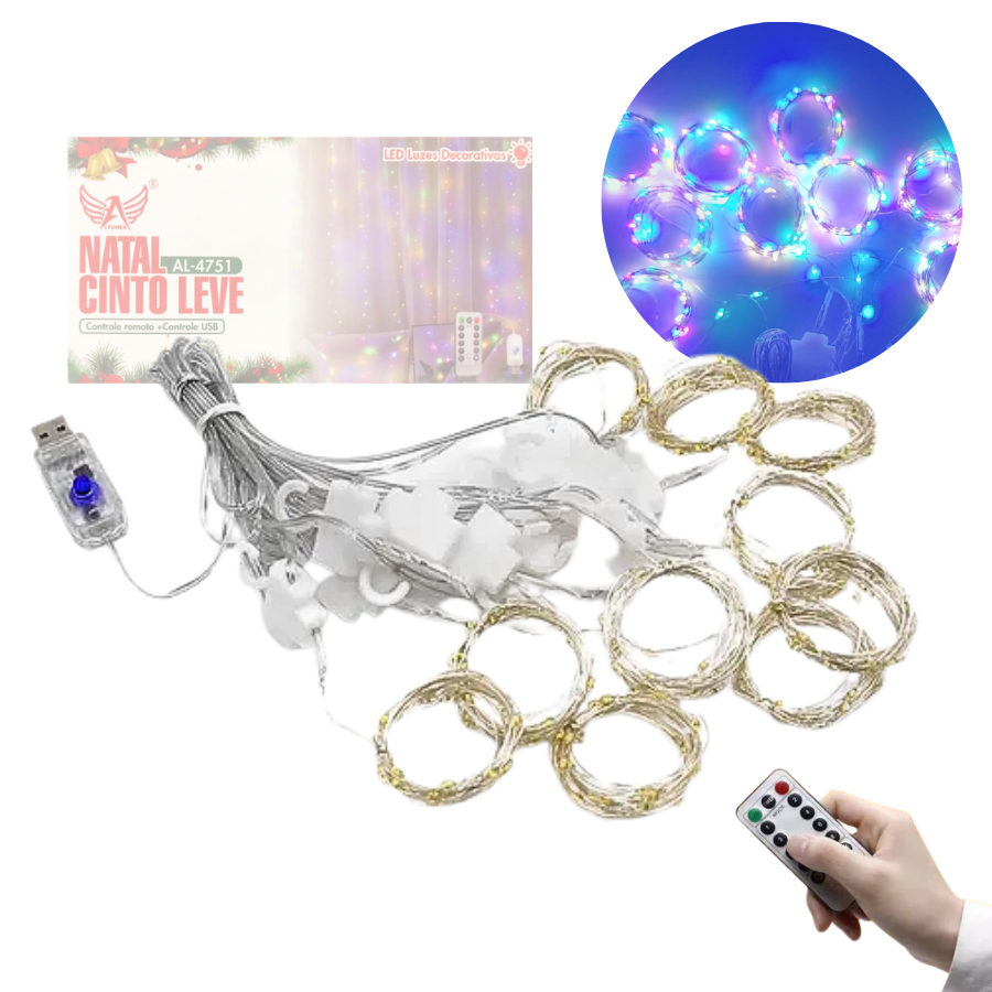 -- Cortina Natalina de Luz LED Colorido 3 Metros Conector USB Altomex AL-4751