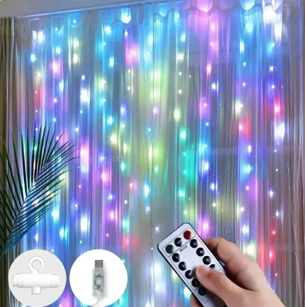 -Quantidade de LEDs: Contém um total de 300 luzes LED distribuídas pela estrutura da cortina, proporcionando alta densidade luminosa.