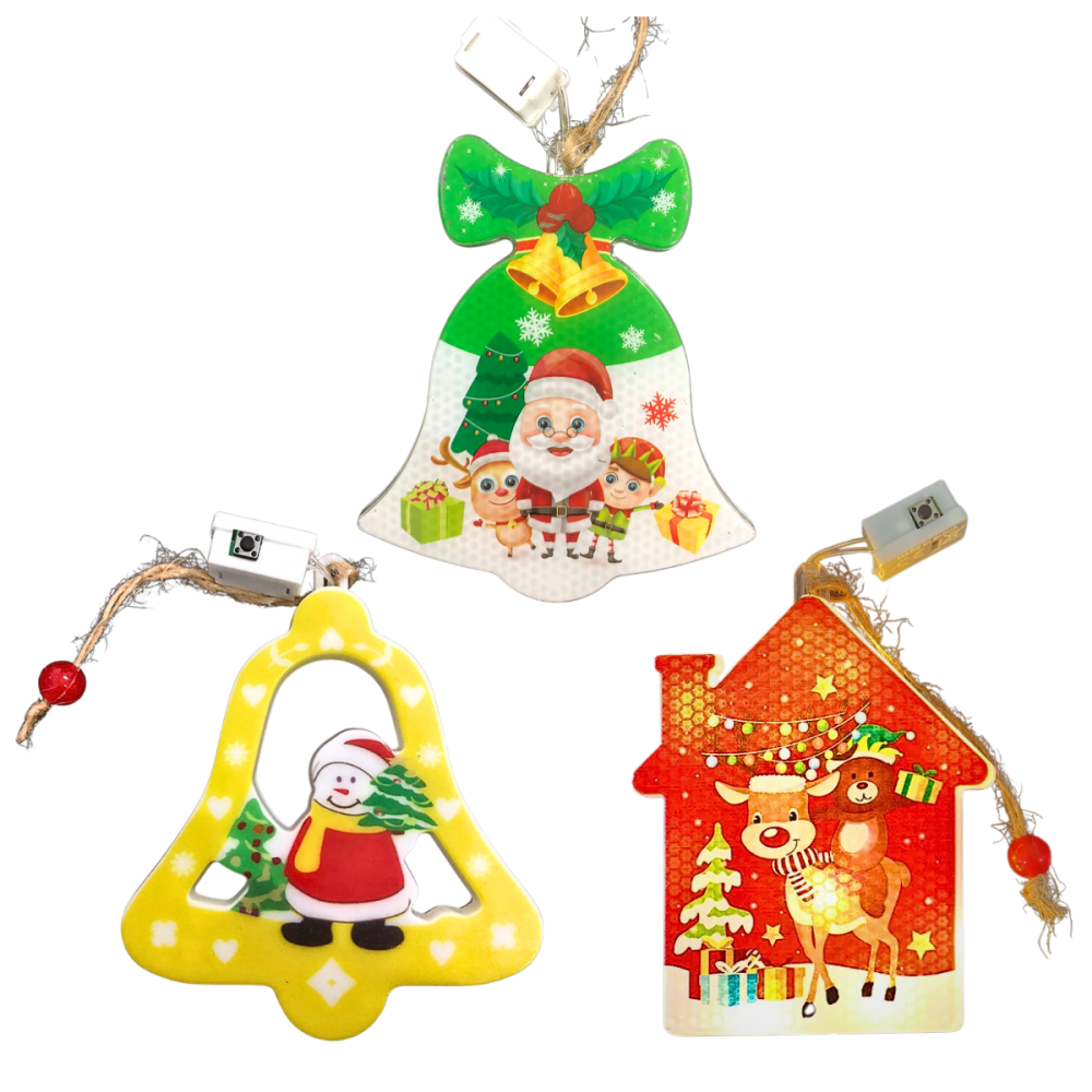 -Formatos Temáticos: O item é composto por 01 pingente decorativo em formatos variados, sendo os mais comuns o Sino de Papai Noel e a Rena de Natal. Esses formatos são o ponto focal da iluminação.