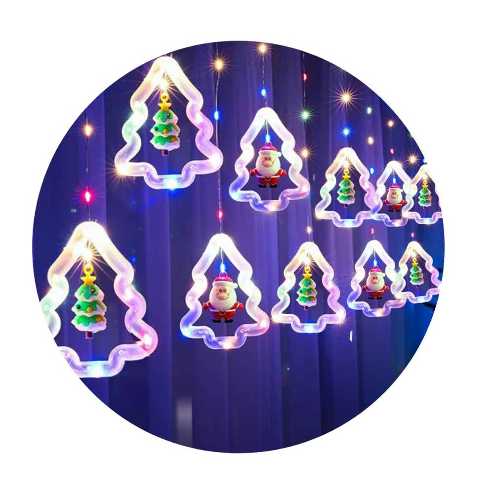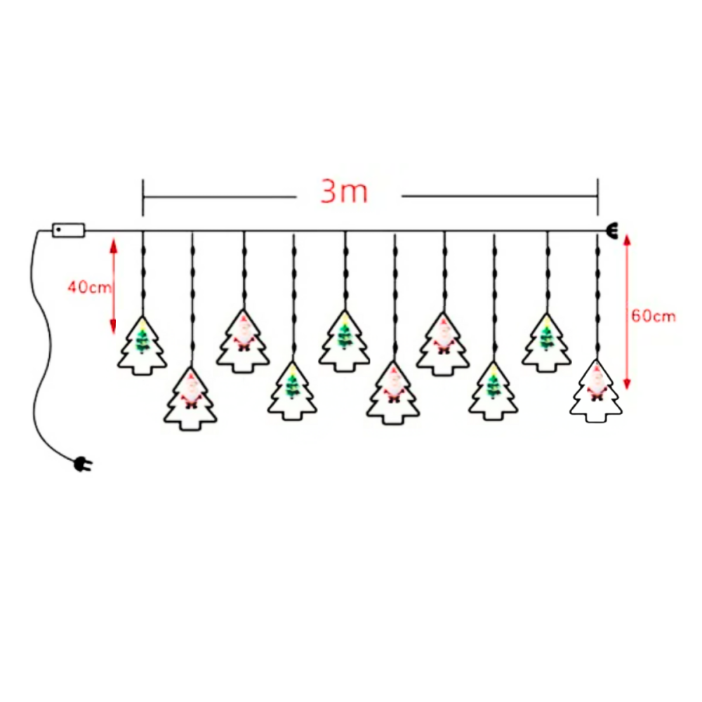 Pisca Pisca Cortina de Luz LED Natalina 3M Arvore de Natal e Papai Noel Colorido