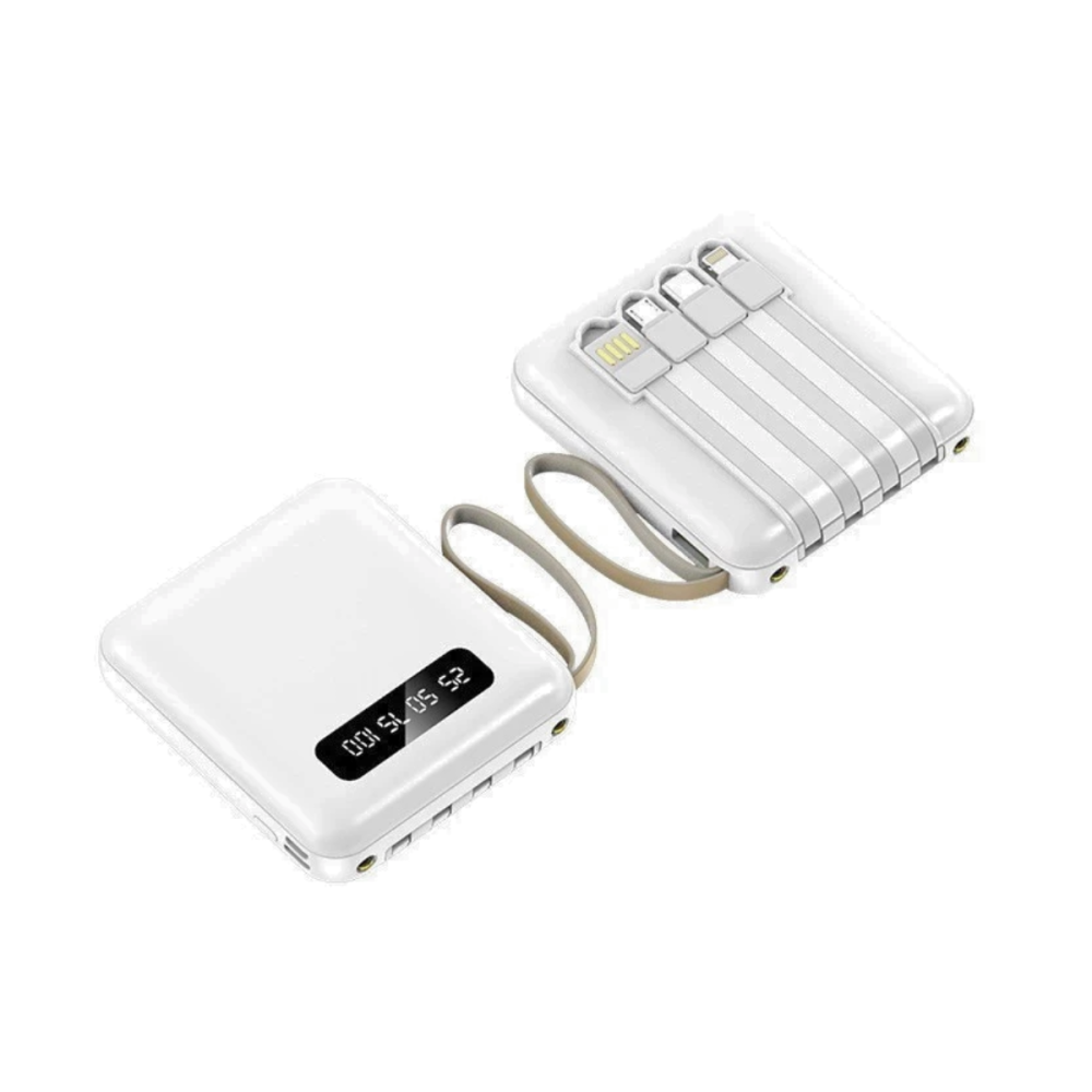 -Portas: Oferece múltiplas opções de entrada, como portas Conexão V8, Tipo-C, Lightning e USB para recarga do próprio Power Bank.