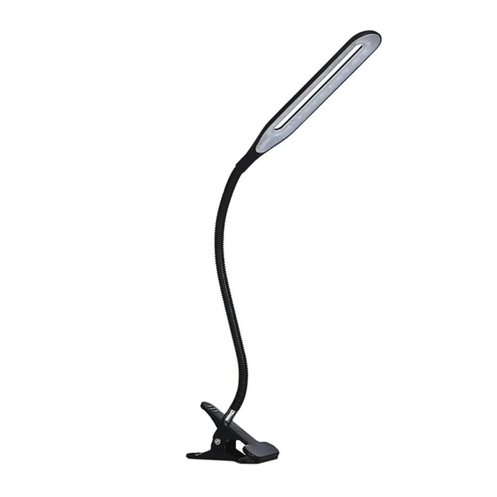 A Luminária LED de Mesa com Presilha é uma solução prática e moderna para quem busca iluminação eficiente, ajustável e portátil. Seu design leve e funcional permite fixação fácil em mesas, prateleiras, bancadas ou cabeceiras, graças à presilha metálica com mola reforçada.