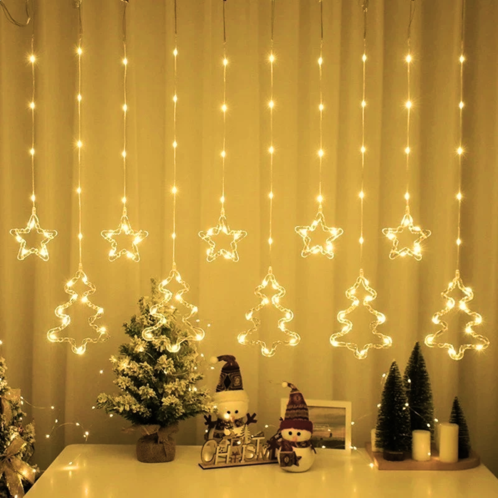 Pisca Pisca LED Amarelo Estrela e Arvore Natalina Bivolt