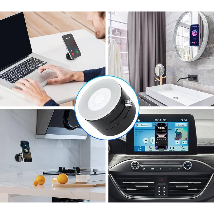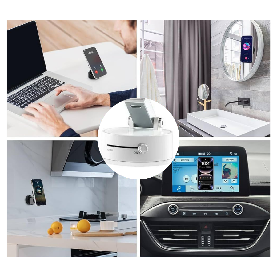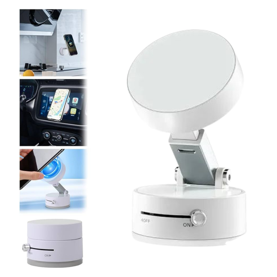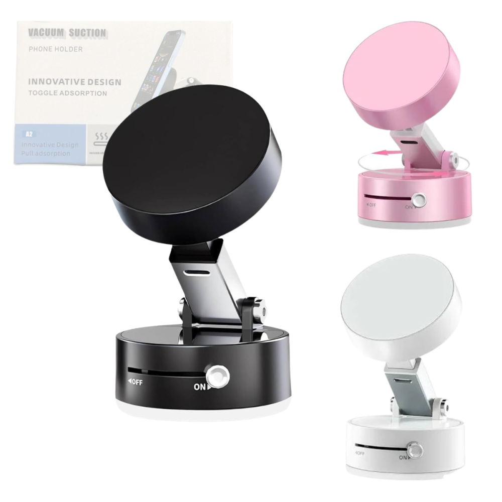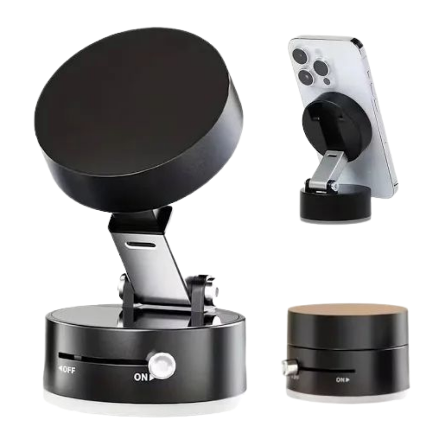 O suporte magnético foi desenvolvido para oferecer fixação segura e estável em diferentes superfícies. Seu sistema combina tecnologia de sucção a vácuo com ímãs de alta potência, proporcionando praticidade no uso e estabilidade ao posicionar o celular.