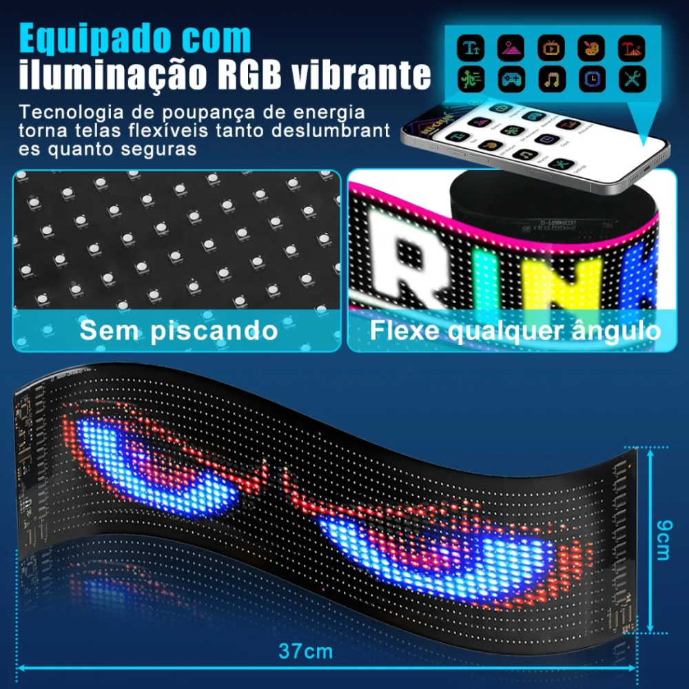 -Alta definição de imagem: Com 16 x 64 pixels (totalizando 1024 luzes), o painel oferece nitidez e excelente visibilidade para textos e animações.