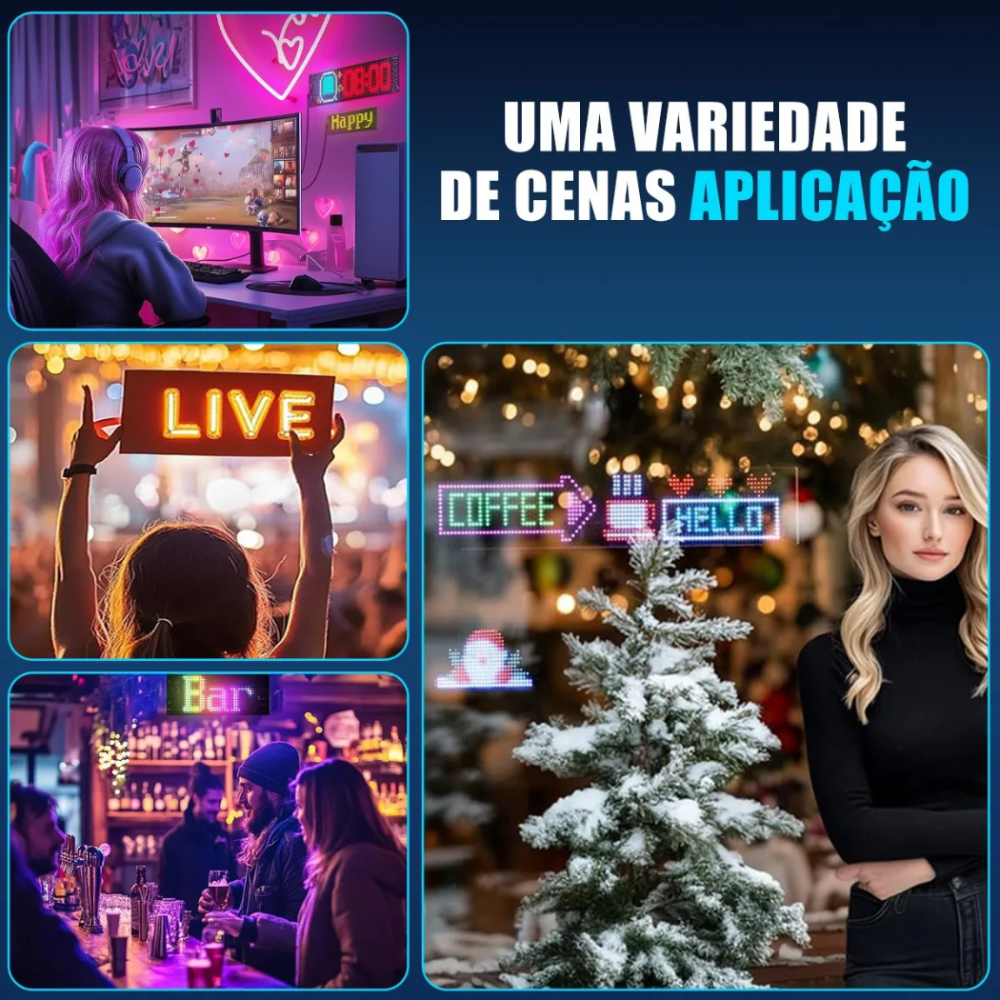 O Painel Letreiro é a solução ideal para quem busca destacar mensagens de forma moderna, eficiente e atrativa. Com excelente resolução e recursos inteligentes, ele é perfeito para estabelecimentos comerciais, feiras, eventos, recepções e diversos outros ambientes.