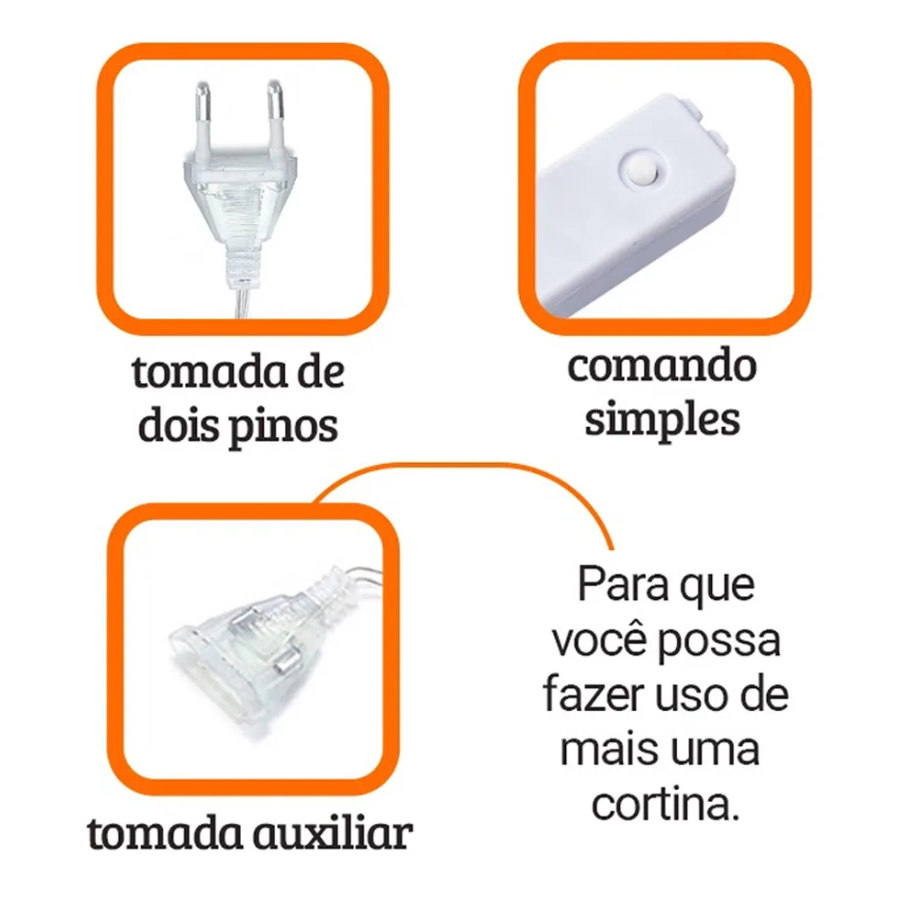 Pisca Cortina Cascata LED Amarelo 3M Estilo Cascata Modelo Rena e Estrela Bivolt