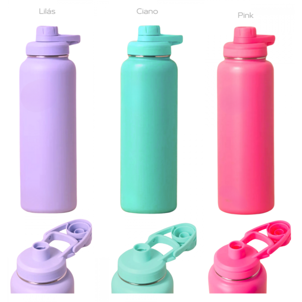 -- Garrafa Squeeze 1 Litro de Aço Inox Térmica com Alça Tampa Rosquear