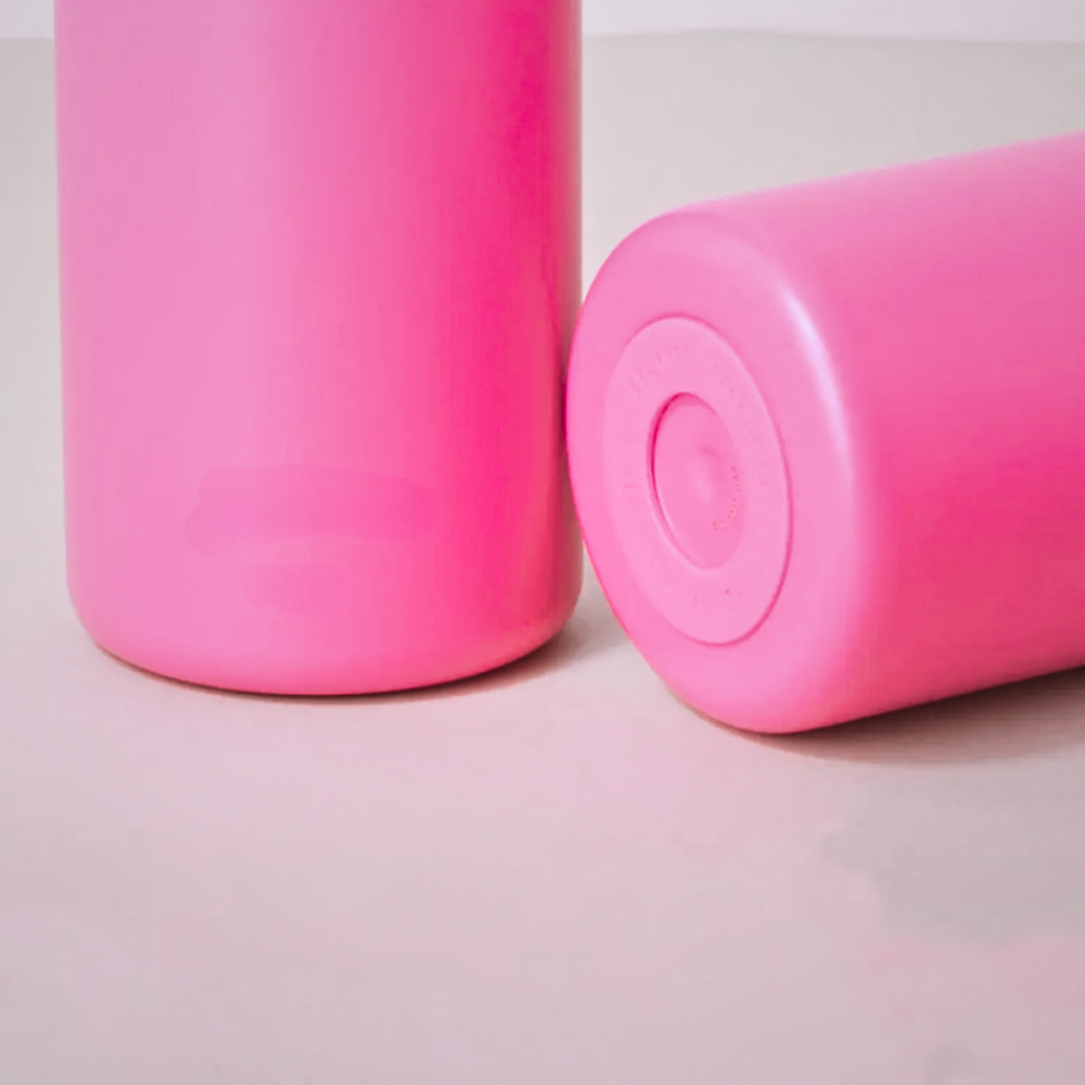 Aço Inoxidável 18/18. Isolamento a vácuo, sem condensação. Resistente à corrosão e oxidação. Livre de BPA. Abertura Hermética, parede dupla.