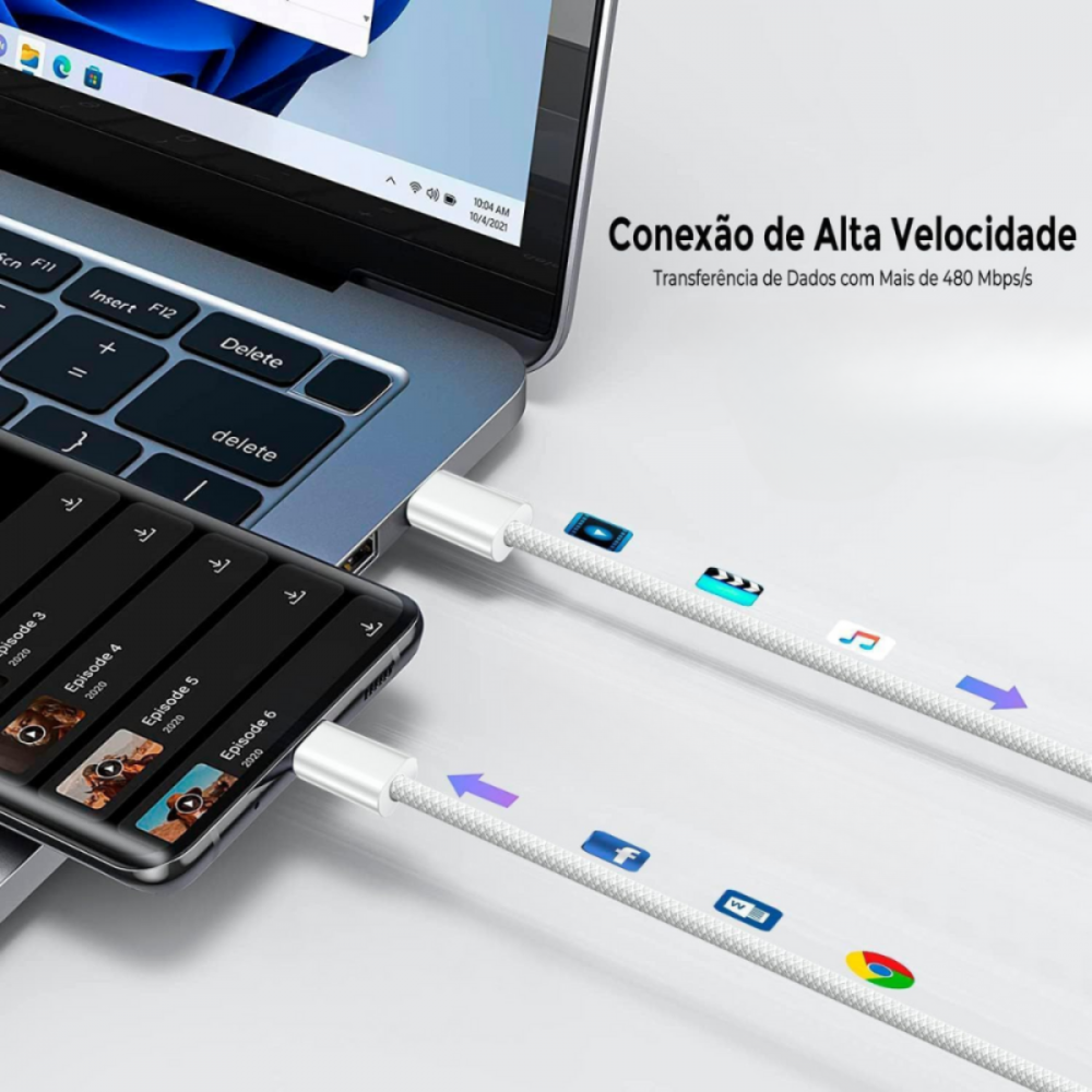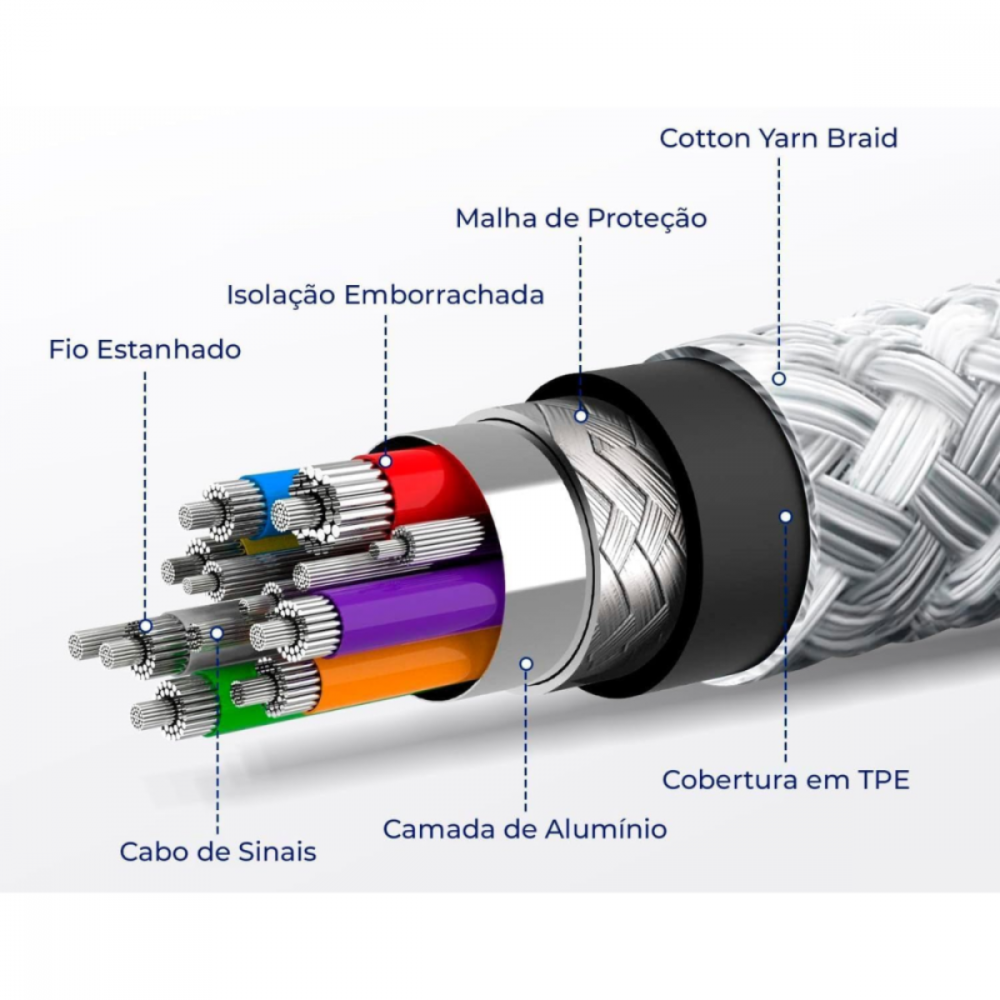 Tamanho Ideal: Cabo de 1 metro, perfeito para uso diário, proporcionando praticidade sem excesso de comprimento.