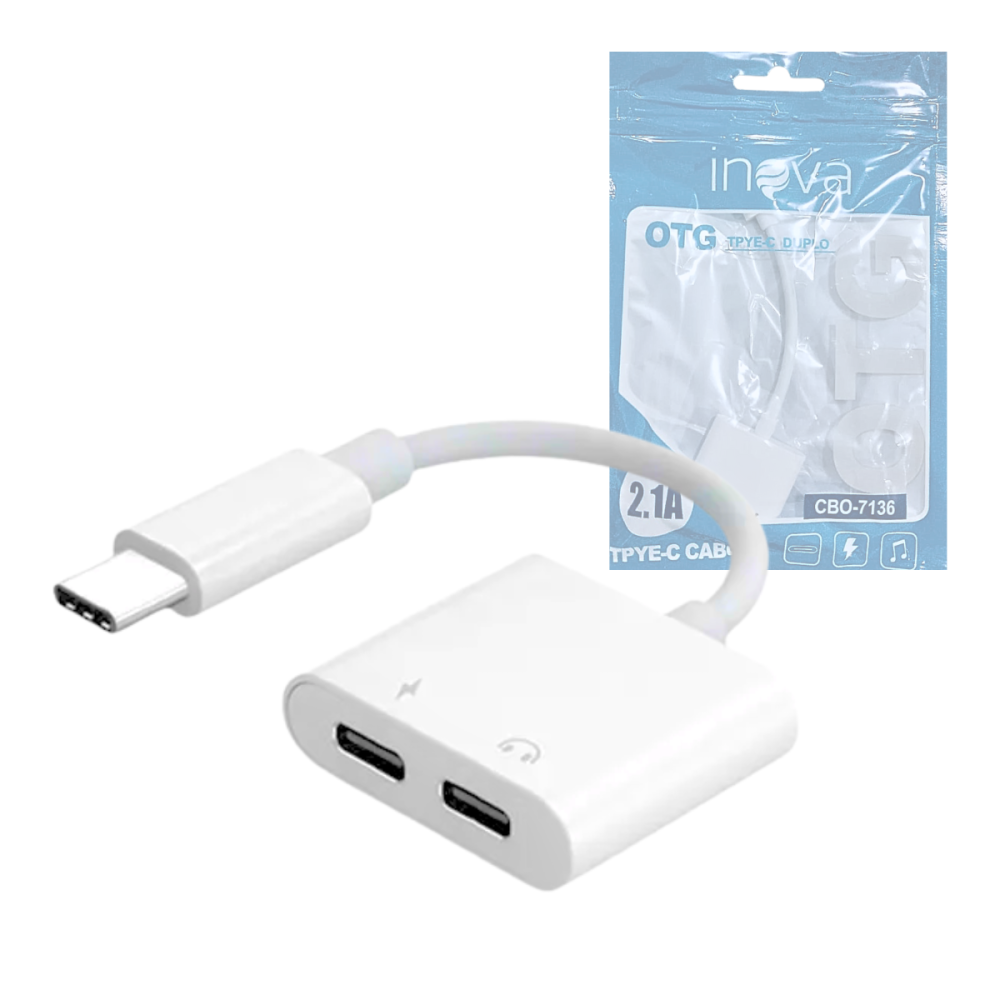 Cabo Adaptador OTG TIPO- C para Áudio e Carregador TIPO- C 2.1A INOVA CBO-7136