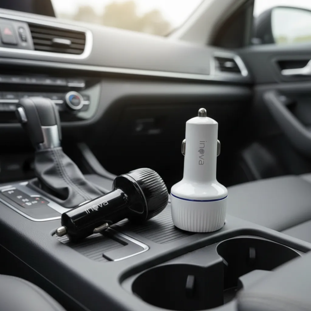 Carregue seus dispositivos com praticidade e velocidade durante suas viagens com o Carregador Veicular INOVA G06-C. Projetado para oferecer eficiência e segurança, ele conta com duas portas USB de alta potência (4.1A no total), permitindo carregar dois aparelhos simultaneamente.
