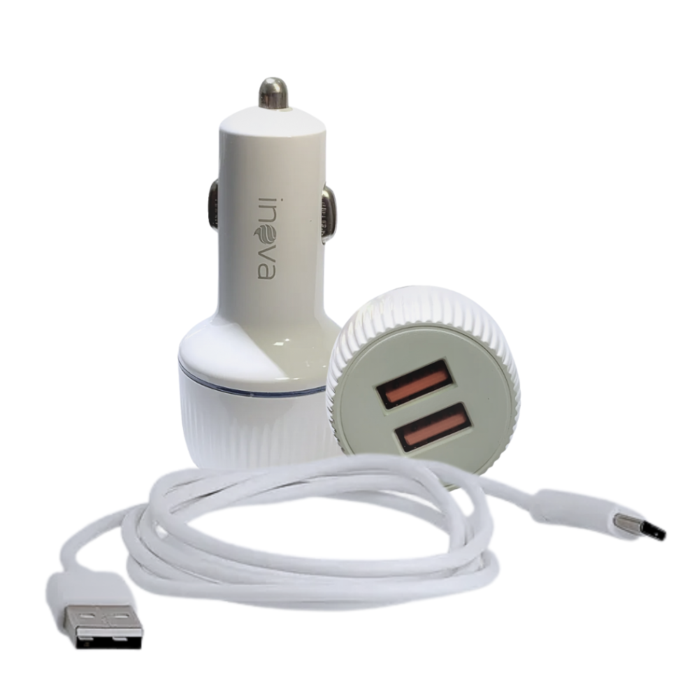 Carregador Veicular 12v TURBO 02 Portas USB 4.1A com Cabo Móvel TIPO-C INOVA G06-C