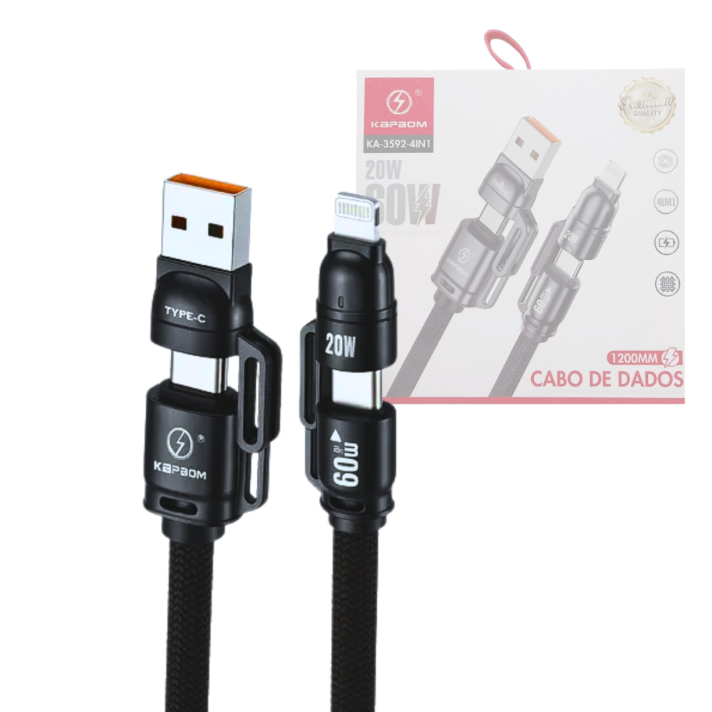 Com o Kapbom KA-3592-4IN1, você tem tudo o que precisa em um só cabo: eficiência, praticidade e qualidade.