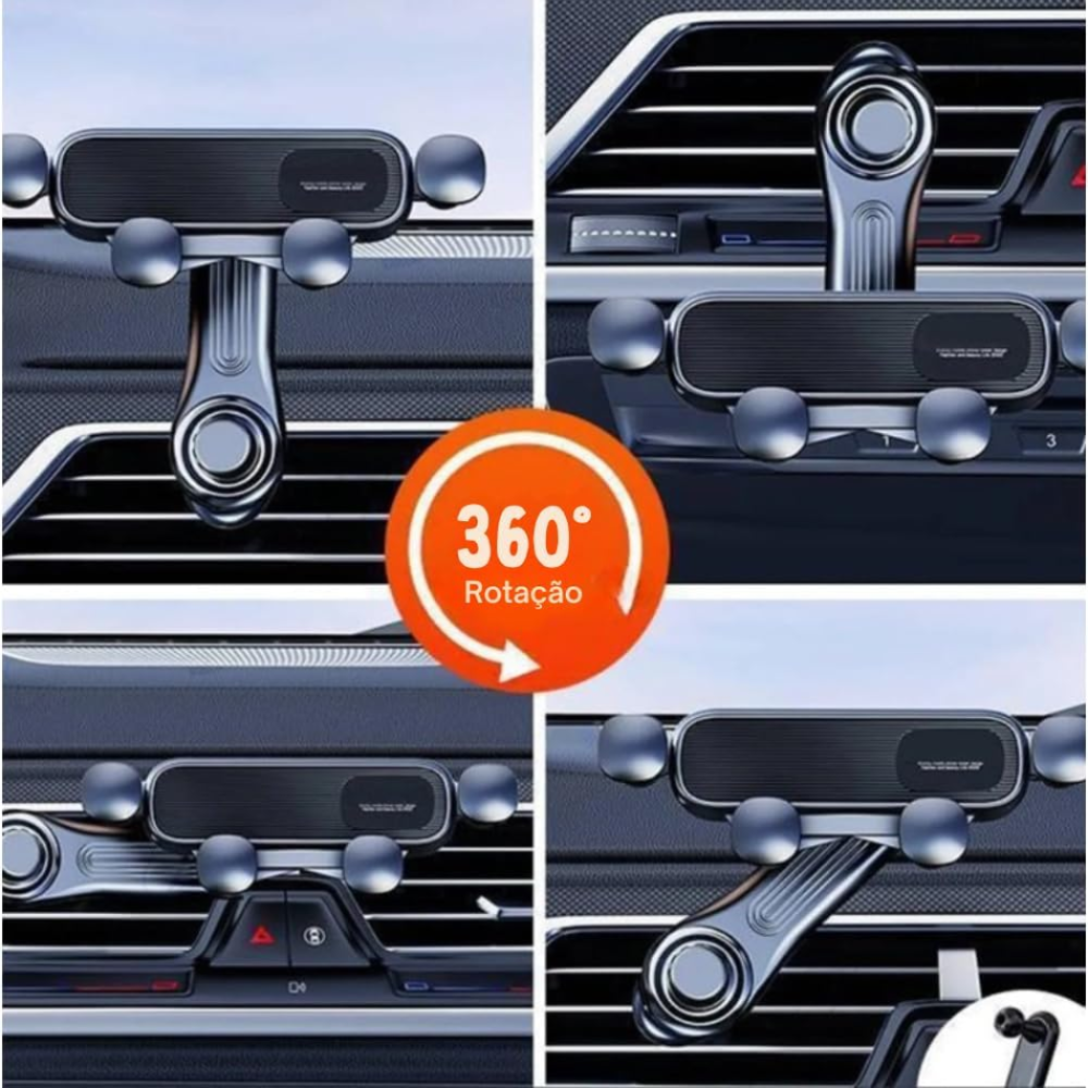 - Fixação no carro: Encaixe em saídas de ar com presilha reforçada