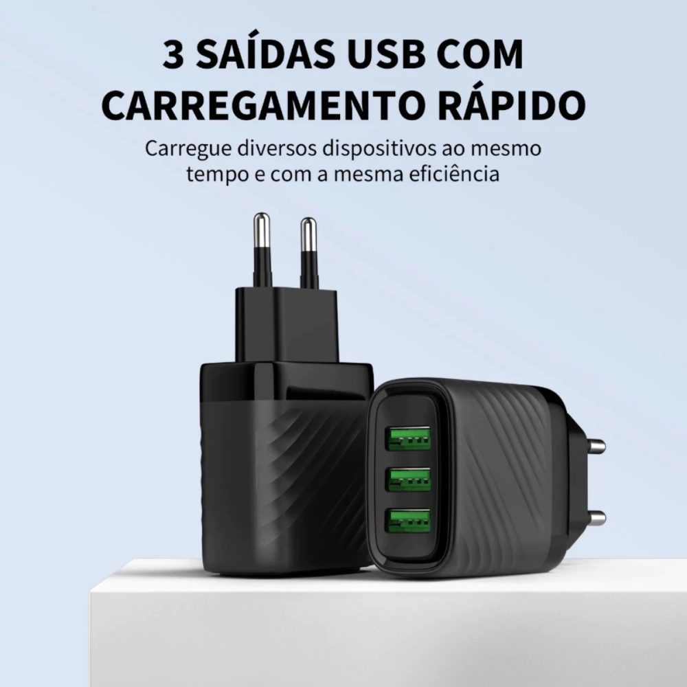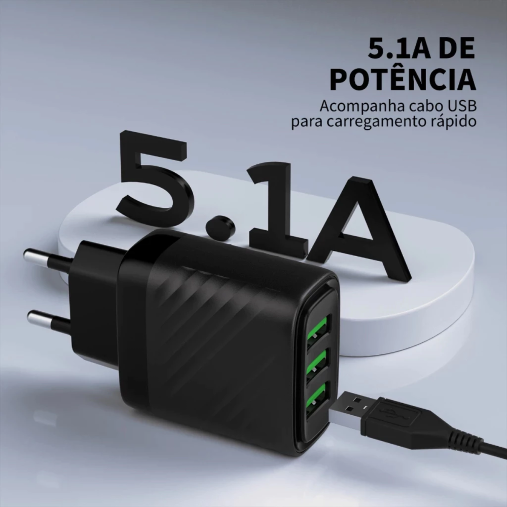 -Saídas: - 3x Portas USB (Saída total compartilhada de 5.1A)