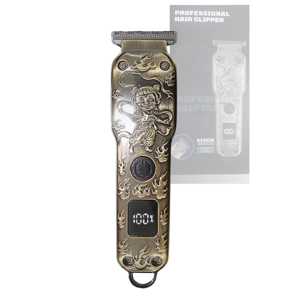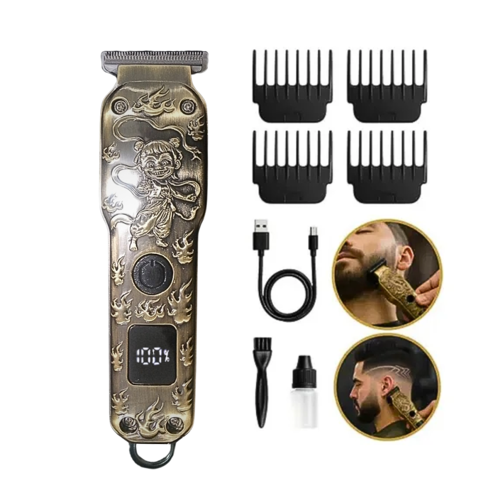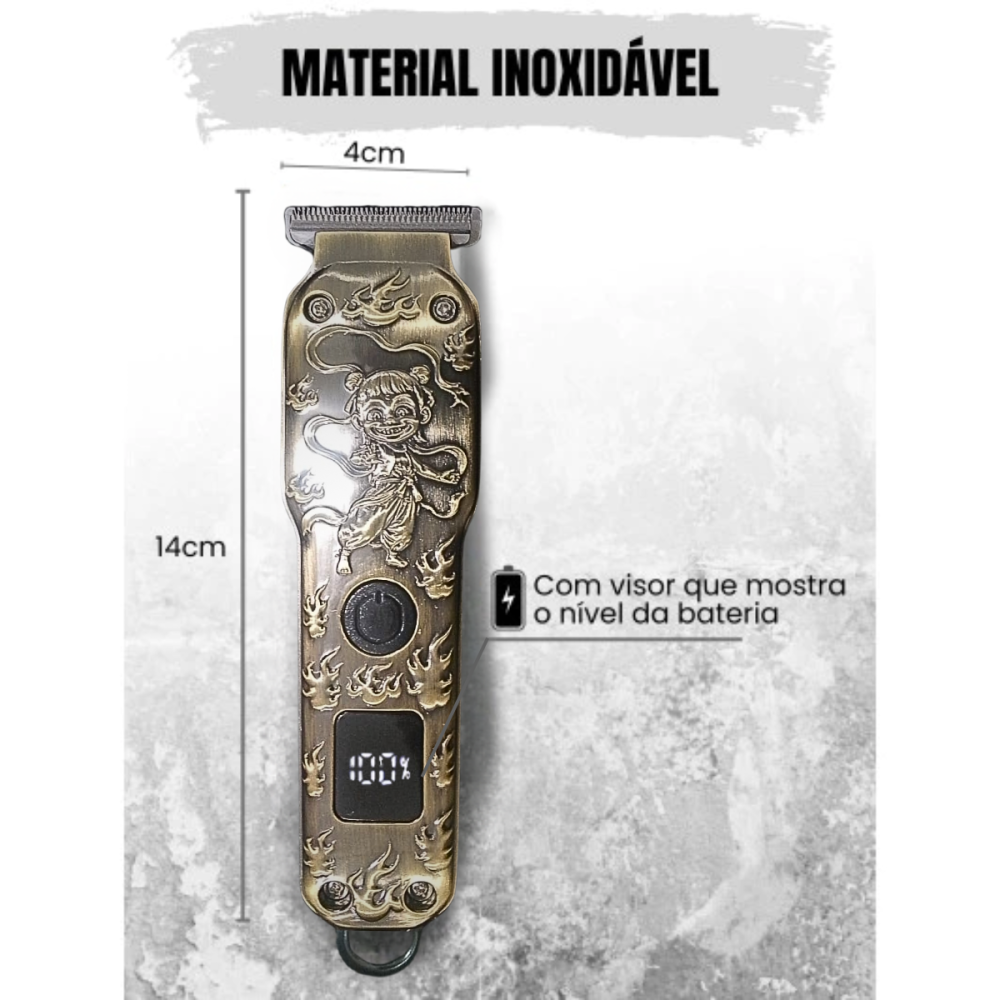 Com seu corpo em metal trabalhado com o exclusivo desenho de "Lutadora" em relevo, ela é a ferramenta ideal para barbeiros e usuários que não abrem mão de estilo.