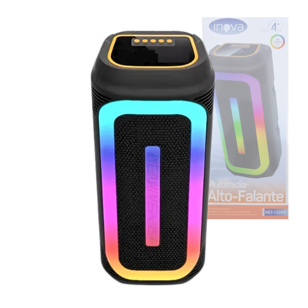 A caixa de som Inova MD-12268 é a escolha ideal para quem busca potência sonora aliada a um design moderno com iluminação dinâmica. Equipada com dois alto-falantes de 4 polegadas, ela entrega um som envolvente e efeitos visuais que transformam qualquer ambiente.