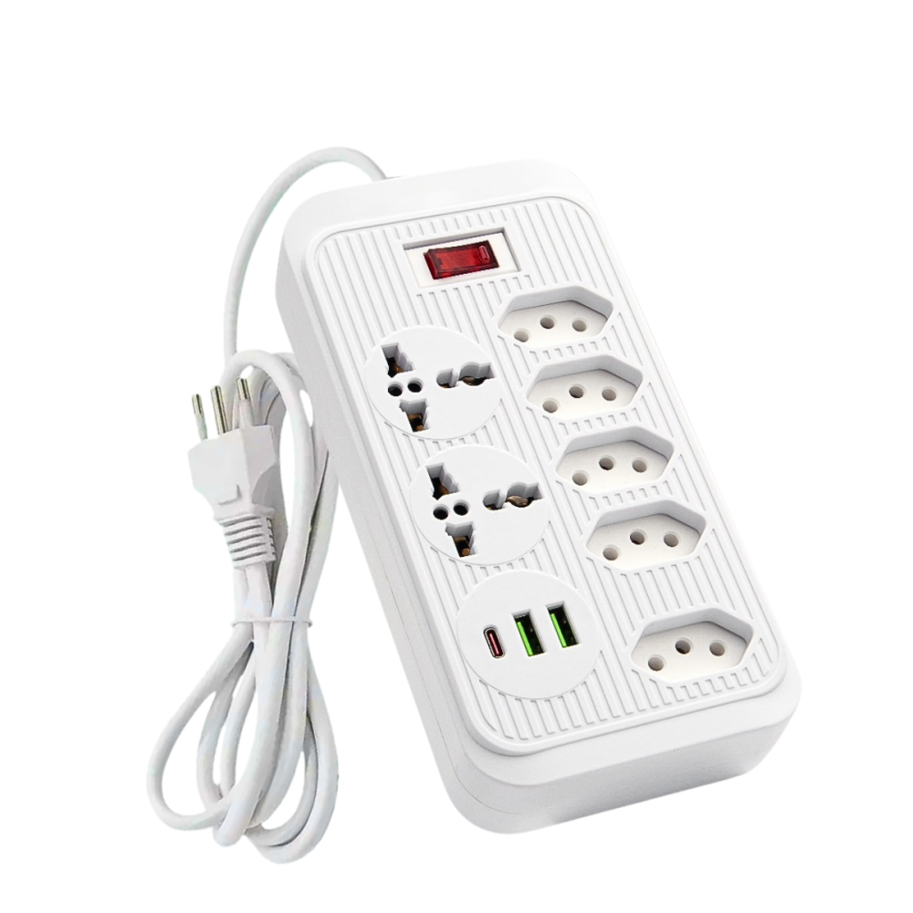-Quantidade de Tomadas: 7 tomadas (sendo 5 no padrão brasileiro NBR 14136 e 2 universais)