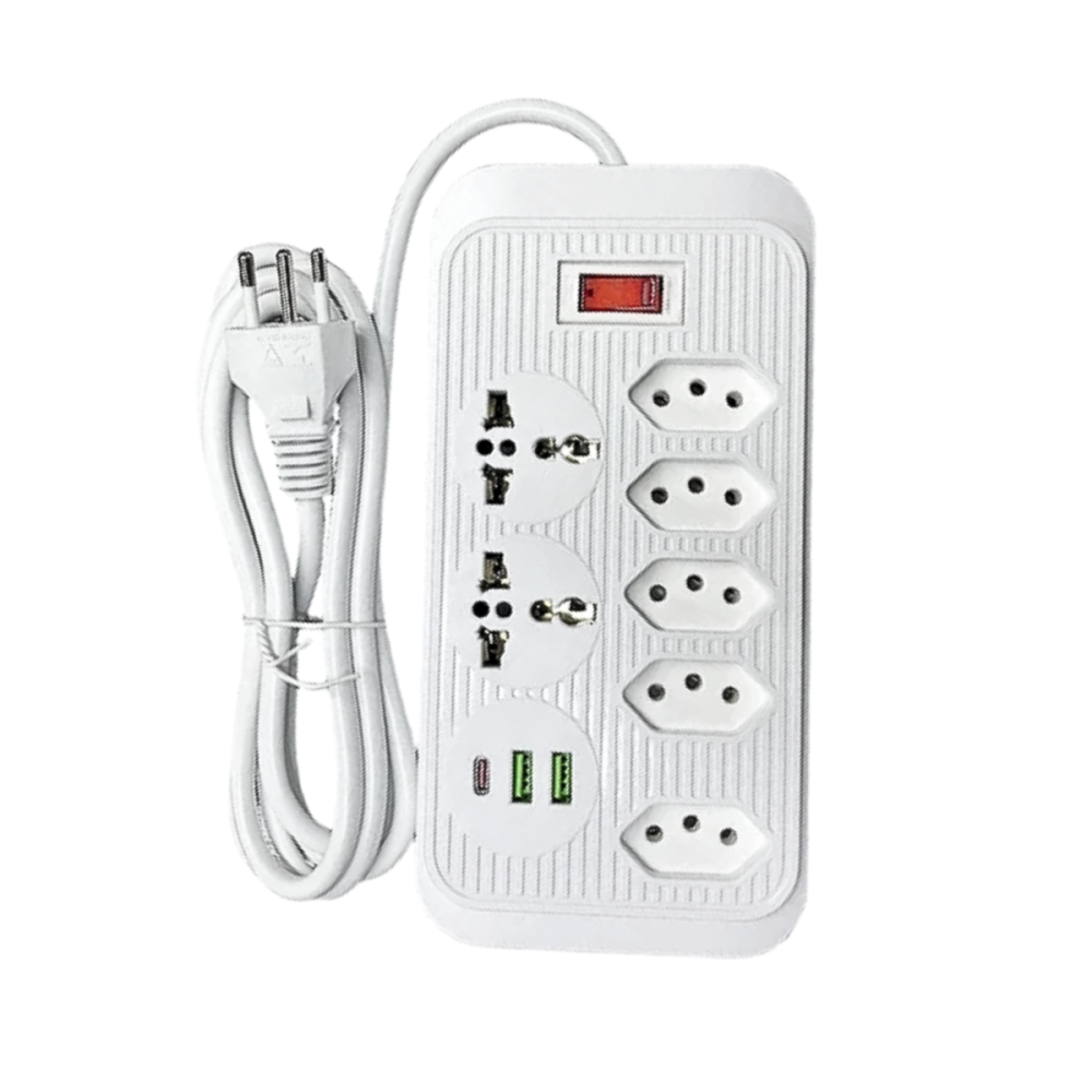 Filtro de Linha com 7 Tomadas 2 USB e TIPO -C Bivolt de 3 Metros
