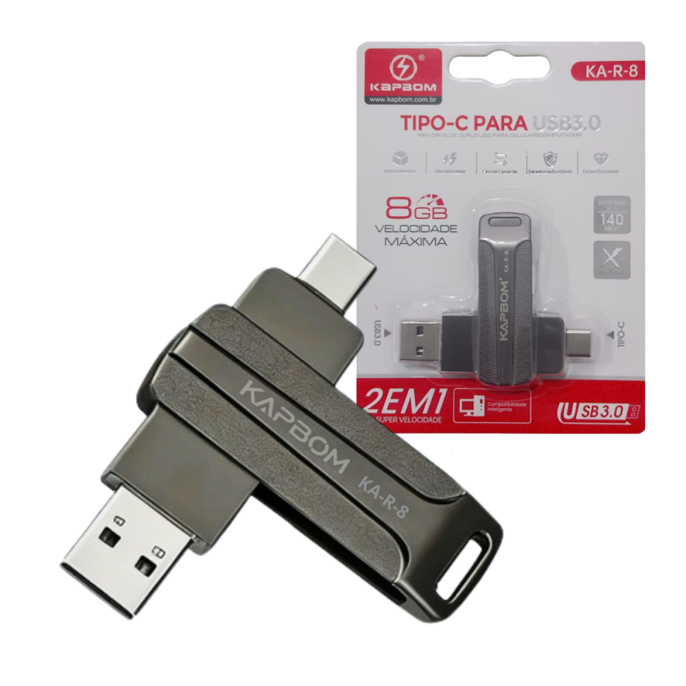 Pendrive 8GB Unidade Flash TIPO-C para USB 3.0 de Alta Velocidade Kapbom KA-R8