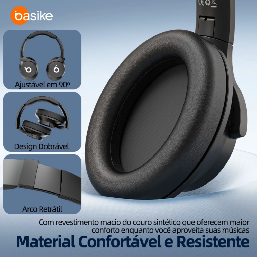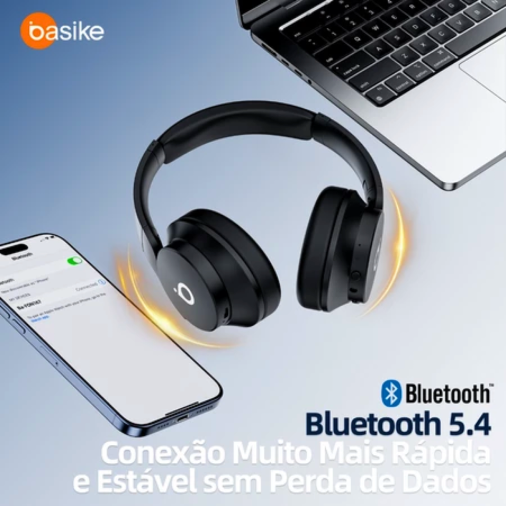 Fone De Ouvido Bluetooth 5.4 Premium Cancelamento de Ruido ANC Basike BA-FON167