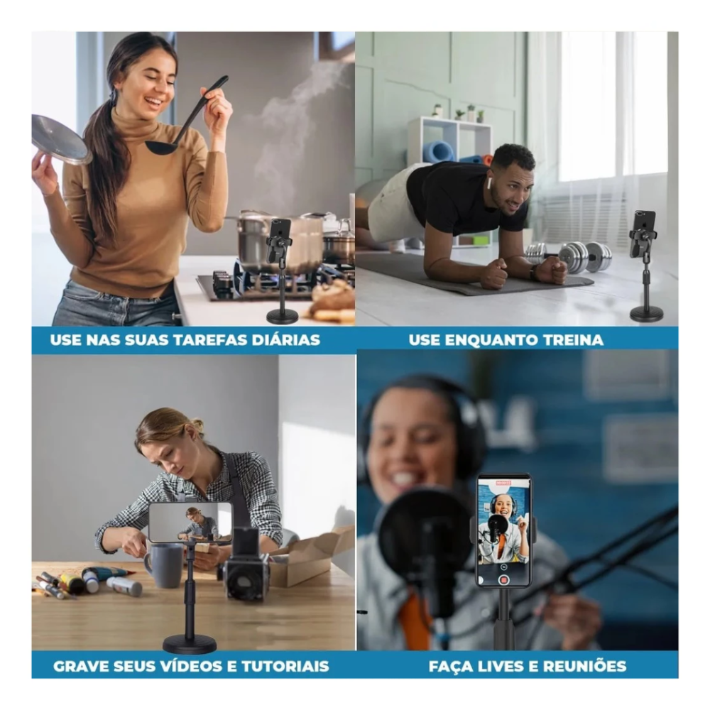 Perfeito para uso em escritórios, home office, mesas de estudo, cozinhas ou qualquer superfície plana onde você queira manter o celular visível com as mãos livres.
