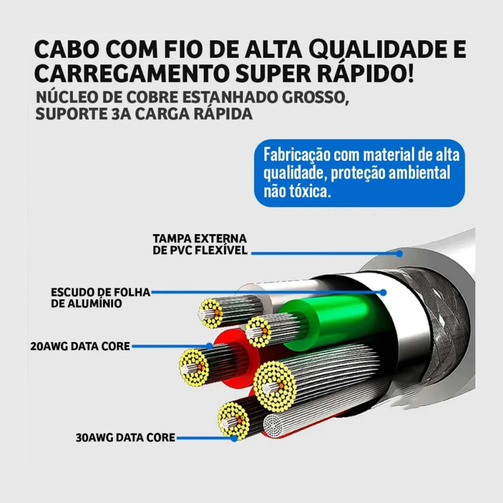 -Construção Premium: Fios de cobre mais espessos internamente para suportar a alta corrente de 4.8A sem aquecer.