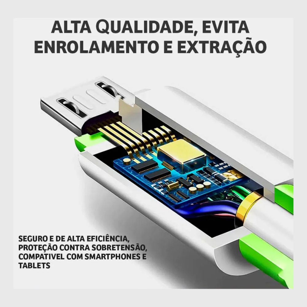 -Tecnologia 4.8A: Desenvolvido para dispositivos que exigem alta performance, garantindo que mesmo com 2 metros de fio a energia chegue com força total.